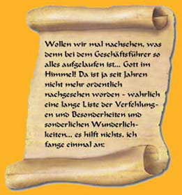 Bei Betriebs- oder Vereinsfeiern kommt dem „Engel vom Dienst“ eine ähnlich große Bedeutung zu. Ob nun die „gewichtelten“ Geschenke an jeden mit einem passenden Wort aus dem „Goldenen Buch“ übergeben werden sollen, ob jeder ein ganz persönliches Geschenk bekommt und dazu eine Aufgabe lösen muss, ob die ganze Belegschaft in einem Jahresrückblick mit Lob überhäuft werden soll oder die Belegschaft der Meinung ist, dass dem Chef mal ordentlich „der Marsch geblasen“ werden muss, nie geht das ohne den „Engel von Dienst“.